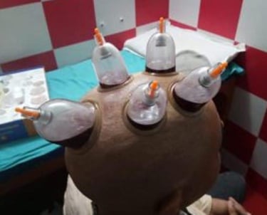 Cupping Massage (Moving Cupping) combines suction and sliding movements to lift, stretch, and decompress tissues instead of pressing down like traditional massage. It improves blood flow, releases deep-seated knots, reduces inflammation, and supports detoxification. Excellent for individuals with muscle tightness, poor posture, stress, or pain caused by overuse. Promotes relaxation, mobility, and lymph drainage. Ideal alternative to deep pressure massage. Duration: 45–60 minutes. ₹999.